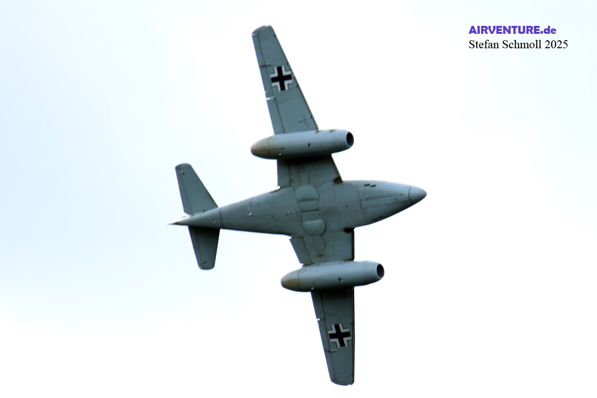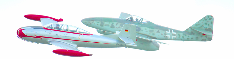 Jetpower gab es auch: Aus Manching brache die Messerschmitt Stiftung die neu produzierte Messerschmitt 262 zum Treffen. Vor einigen Jahren wurde sie gemeinsam mit einer der zur Stiftung gehörenden Messerschmitt 109 vorgeflogen. |